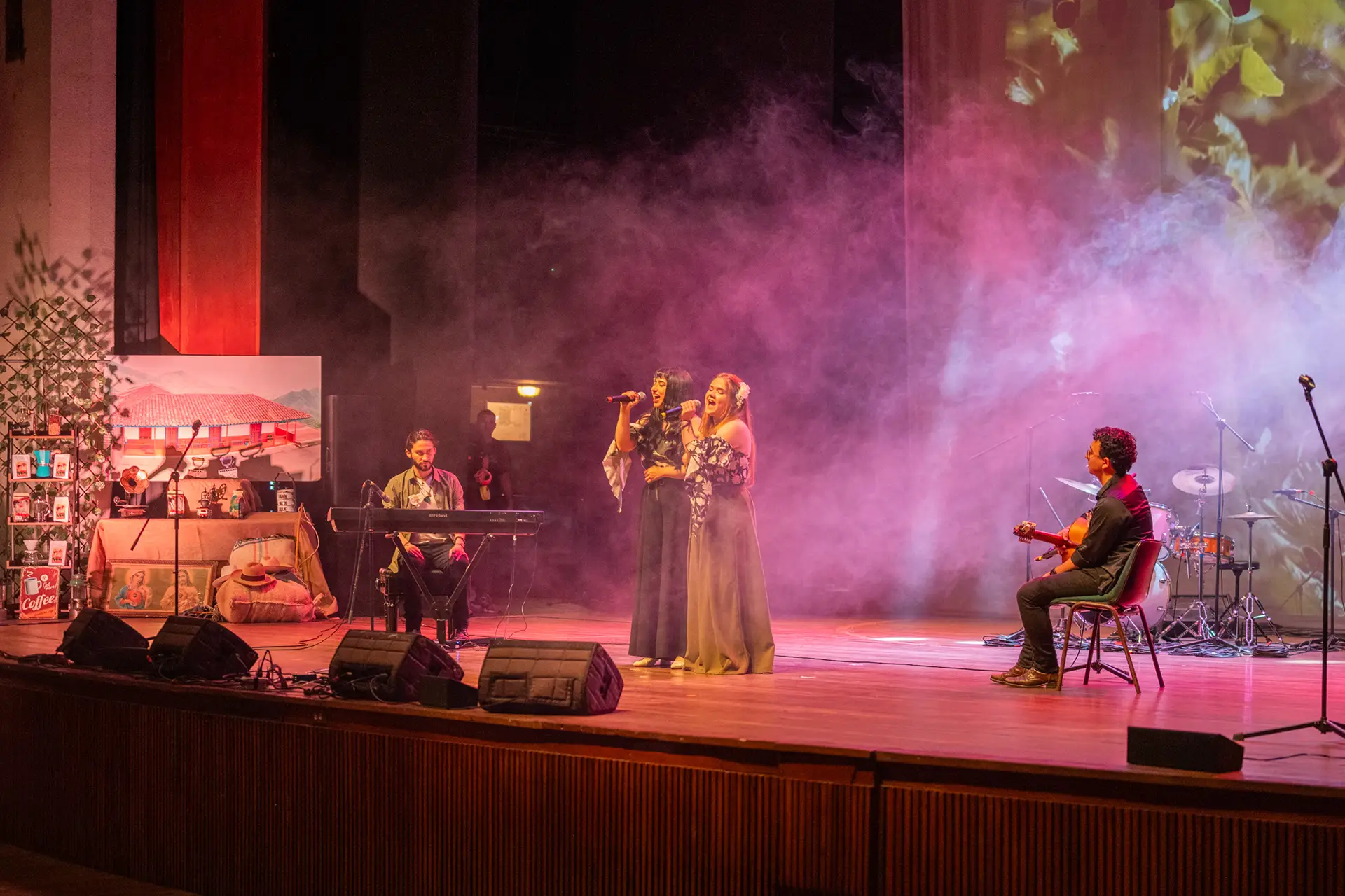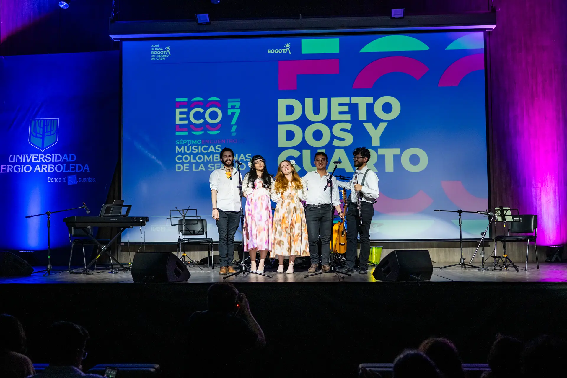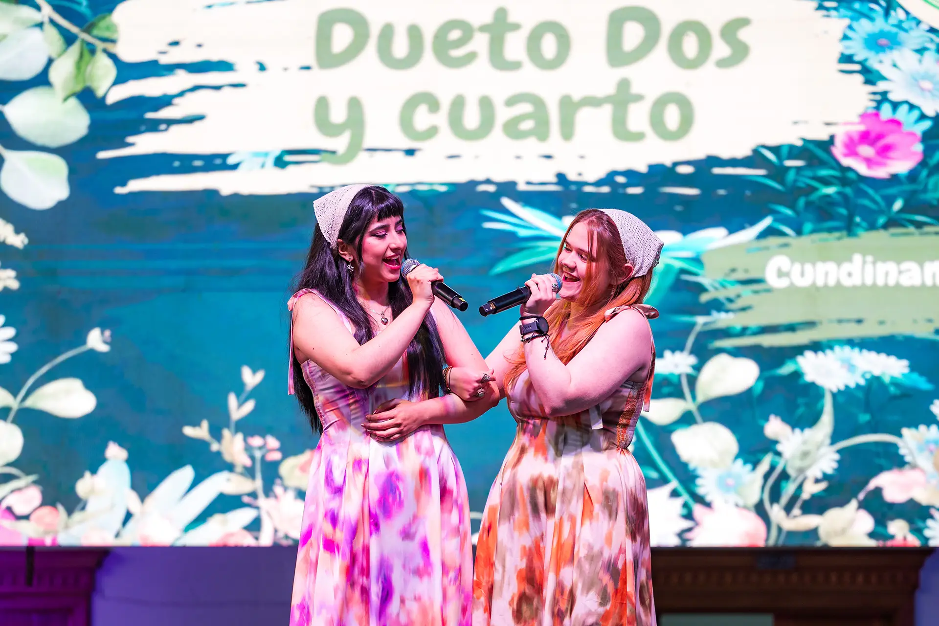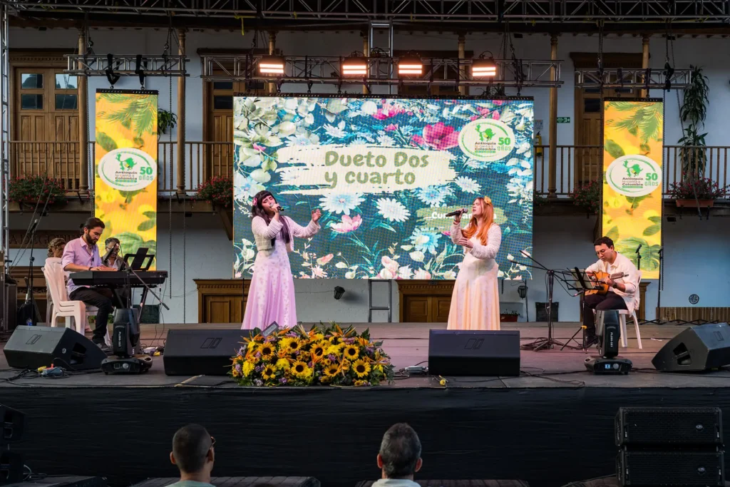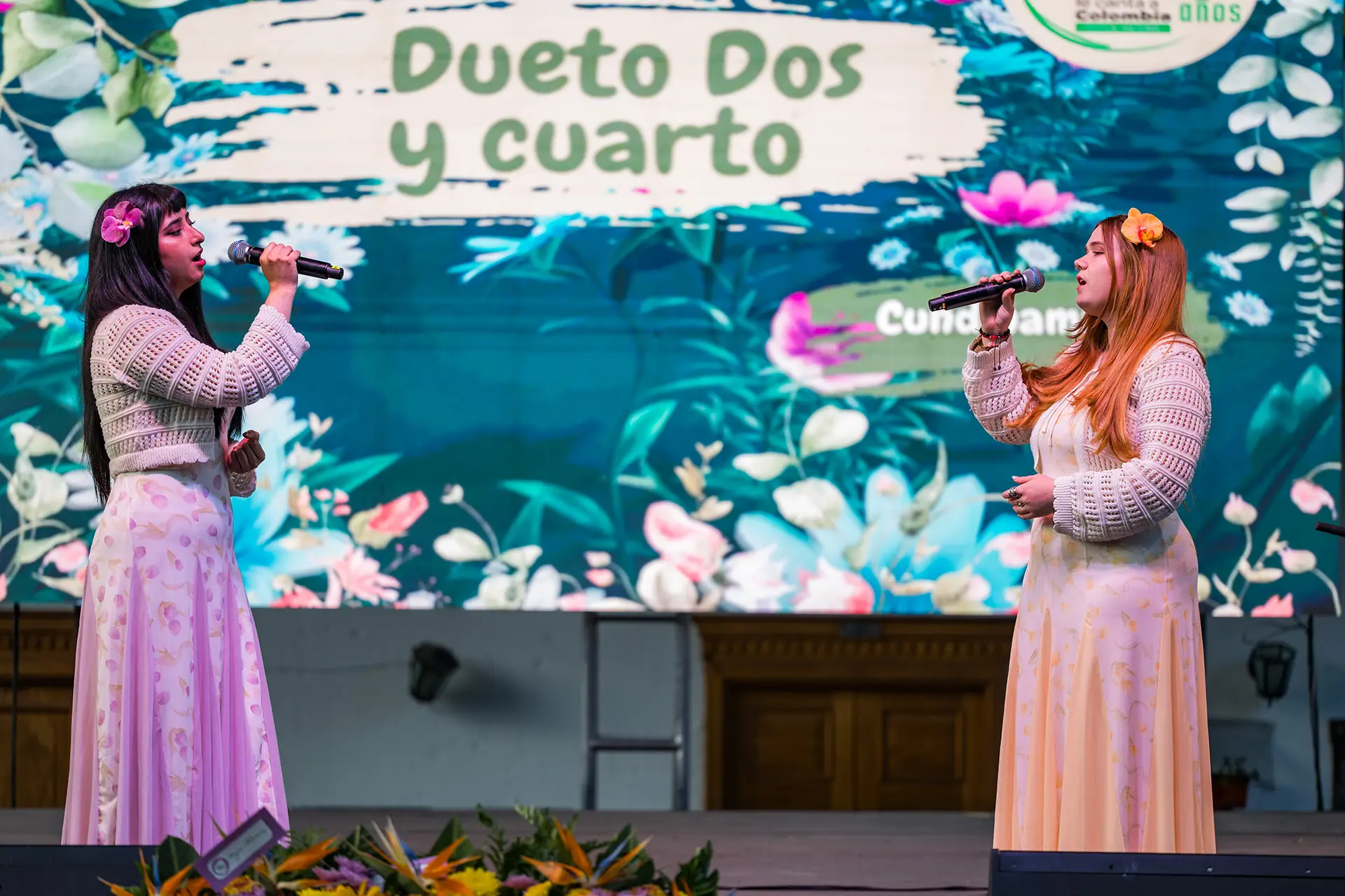 Su propuesta artística combina arreglos propios con la esencia de los ritmos andinos, buscando preservar y revitalizar la música tradicional colombiana. Conformado como un dueto vocal femenino acompañado por tiple y piano, Dos y Cuarto ofrece una experiencia sonora fuera de lo común. El tiple, instrumento autóctono colombiano, proporciona la sonoridad tradicional característica de la música andina. A su lado, el piano introduce un toque moderno, enriqueciendo la textura sonora del grupo. La interacción entre estos dos instrumentos y el juego vocal característico de la agrupación genera un equilibrio perfecto entre lo tradicional y lo contemporáneo, creando un ambiente sonoro en el que se respeta la herencia cultural mientras se incorpora una visión fresca y actual.